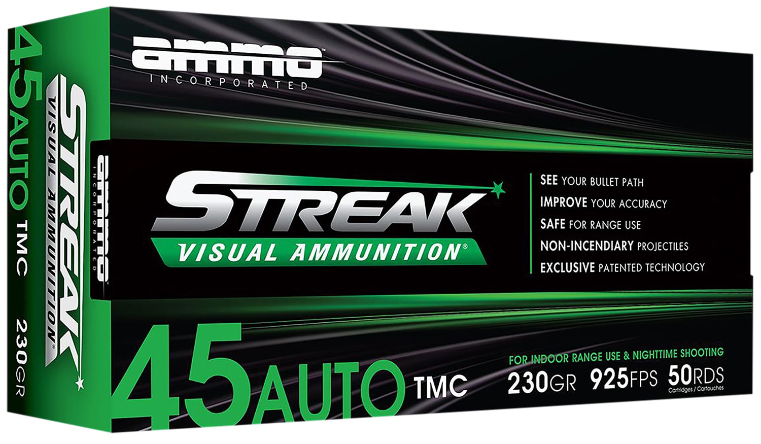 Ammo Inc 45230TMCSTRKGRN50 Streak Visual (GREEN) 45ACP 230gr Total Metal Case 50 Per Box/20 Case
