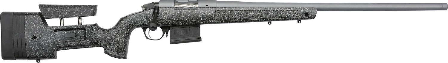 A staple in the Bergara lineup. The stock on the Bergara Premier HMR Pro (Hunting and Match Rifle) has an integrated mini-chassis for repeatable bedding and an adjustable cheek piece and length of pull spacers as well as integrated QD flush cup sling mounts and swivel mounts. It supports a fully free-floating, 410 stainless steel barrel and has a TriggerTech Primary w/Frictionless Release Technology trigger. Includes an AICS style detachable magazine.