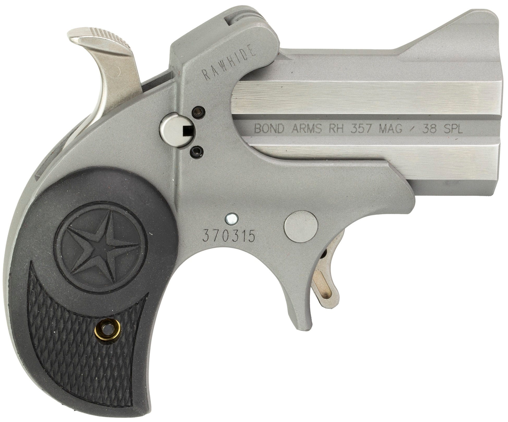 Bond Arms, MFG# BARHR – 357/38, UPC: 855959003233, UOM: EA, Rawhide, .357/.38 Special, 2.5″ Barrel, Fixed Sights, Black Rubber Grip, Stainless, 2-rd, BOND, BONDHG25, BONDHGALL, HG25, HGALL