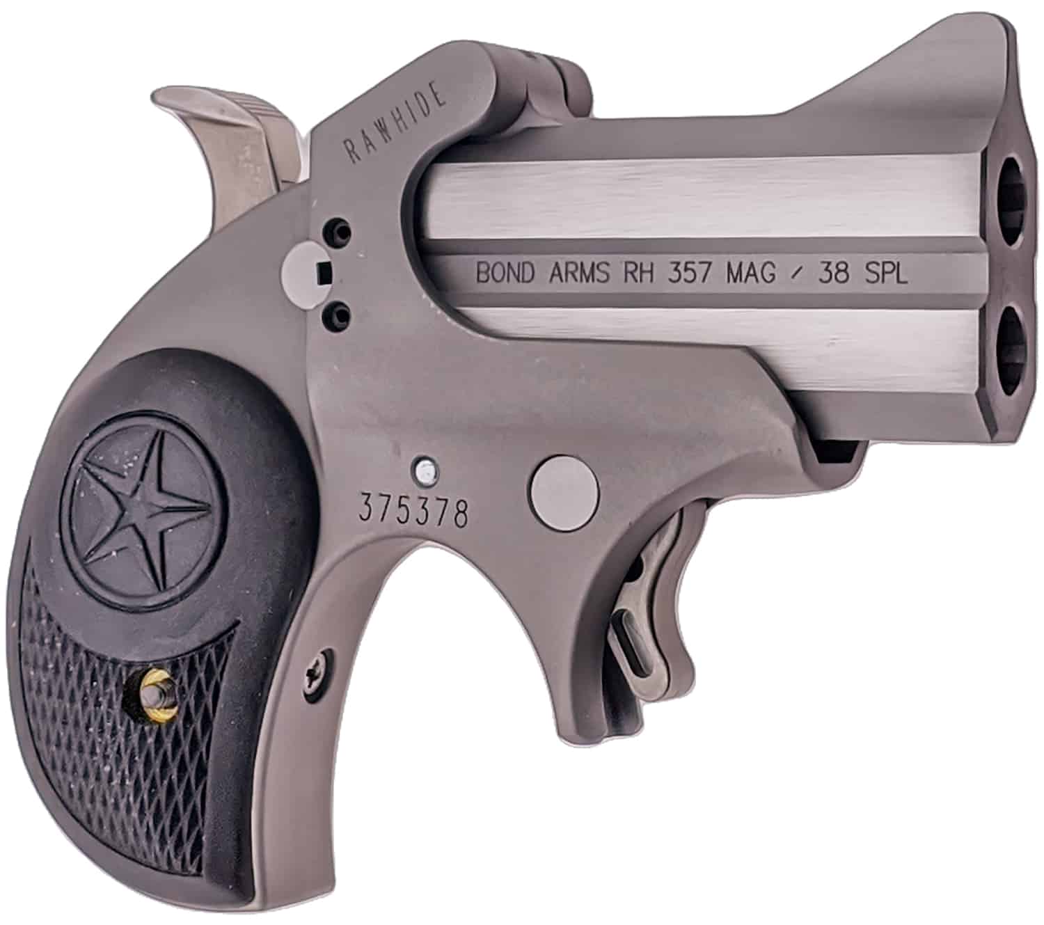 Bond Arms BARHR Rawhide 38 Special/357 Mag 2 Shot 2.50″ Rough Matte Stainless Steel Barrel & Frame, Black Rubber Grips