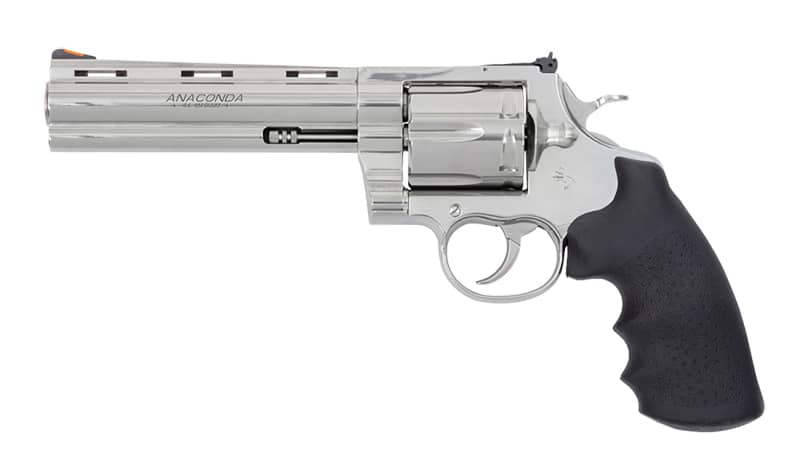 Colt, MFG# ANACONDA-SP6RTS, UPC: 098289005342, UOM: EA, Anaconda,44 Mag, 6″ Barrel, Red Ramp Front /Adj Rear Sights, SS, Hogue Overmold Grip,6rd, COLT, COLTHG20, COLTHGALL, HG20, HGALL