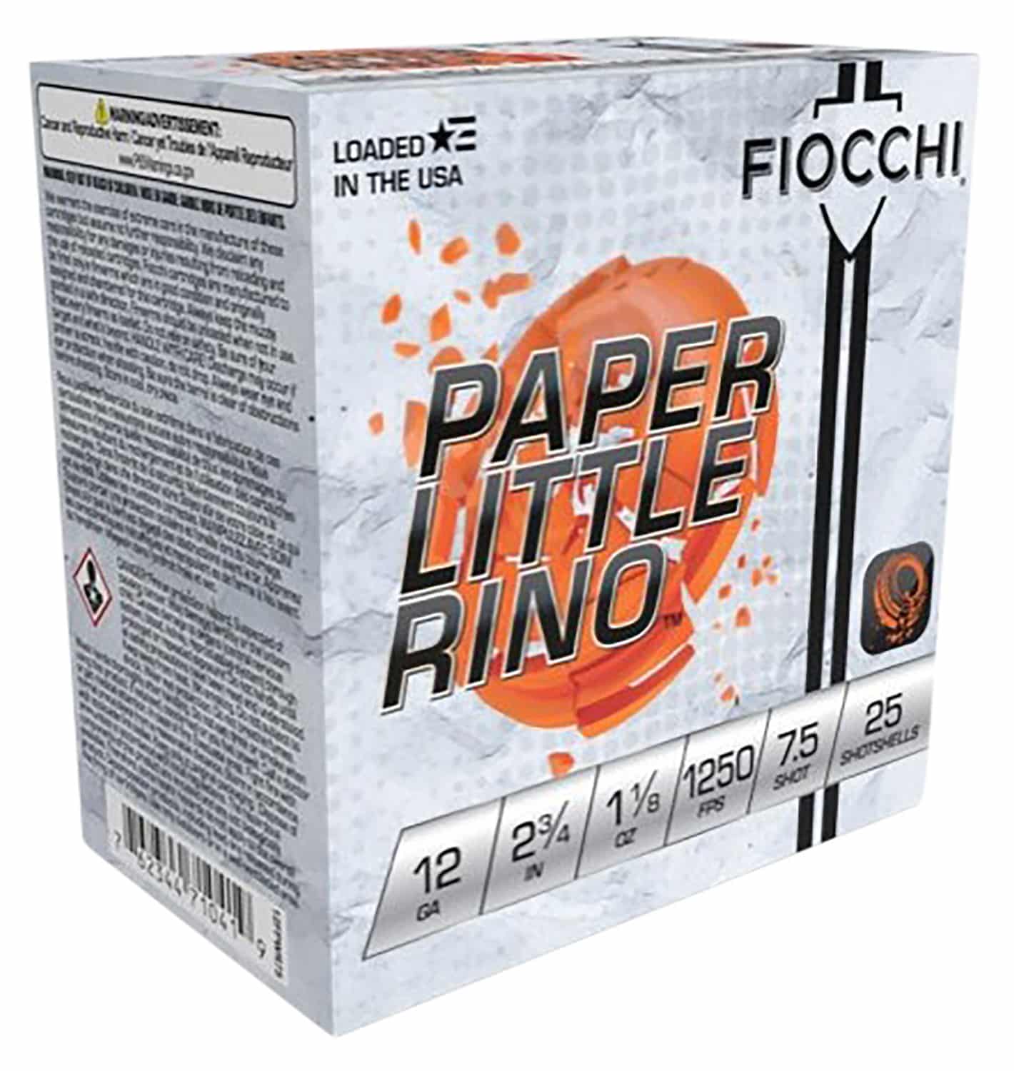 Fiocchi 12FPWR75 Paper Little Rino Extrema 12Gauge 2.75″ 1 1/8oz 7.5Shot 25 Per Box/10 Case
