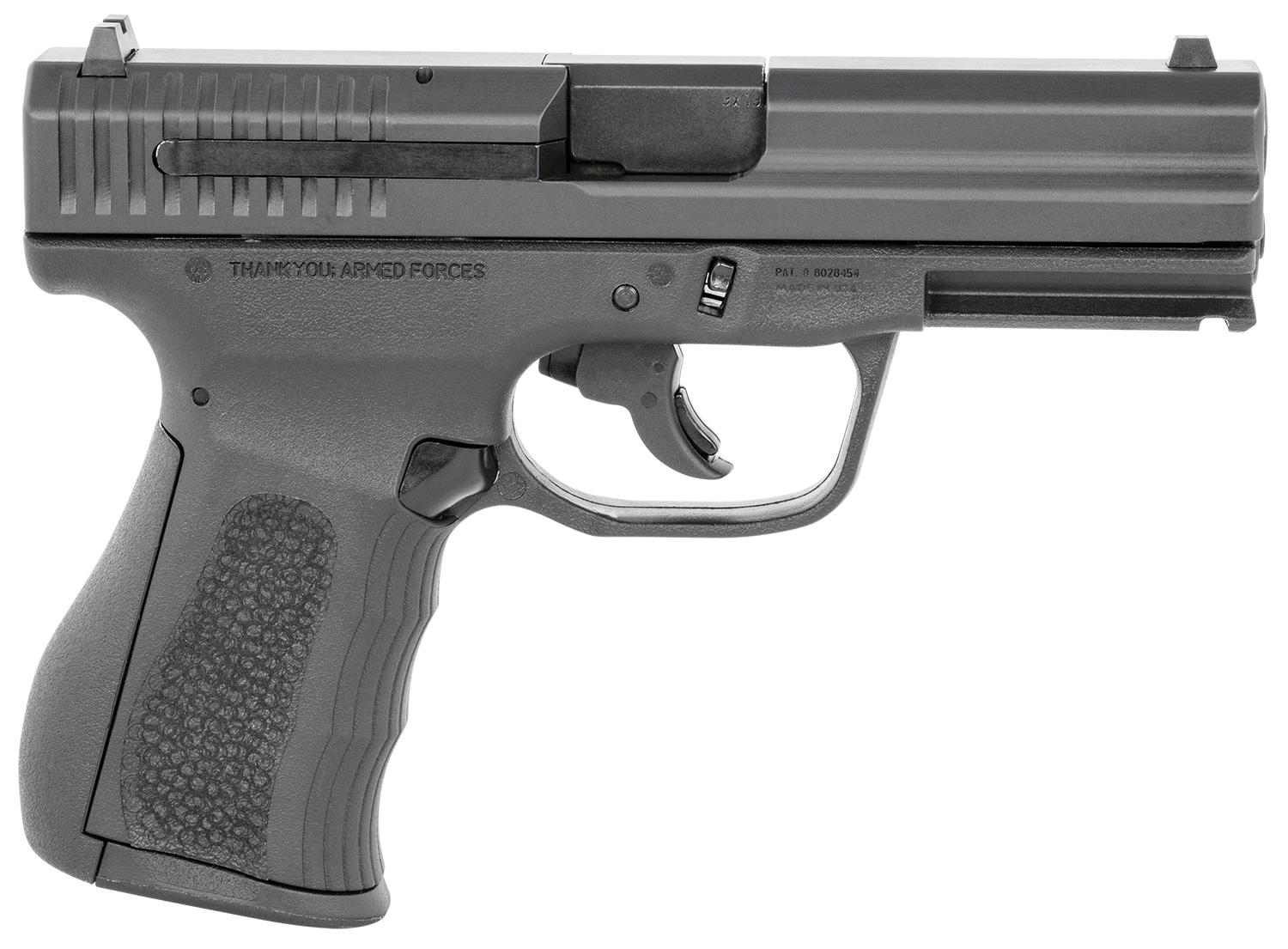 The FMK 9C1 G2 fast action trigger comes standard for most states except CA and MA which come with the Double Action Only trigger. Feature aggressive textured grip with a rubberized backstrap, the 9C1 G2 is ergonomically built to comfortably fit both large and small hands; the barrel is engineered to sit low for superior point and shoot accuracy and reduced muzzle flip; Picatinny rail; chamber loaded indicator; beveled mag well and an enlarged trigger guard. The 9C1 G2 has virtually no external protrusions, making it ideal for concealed carry. Includes one magazine.