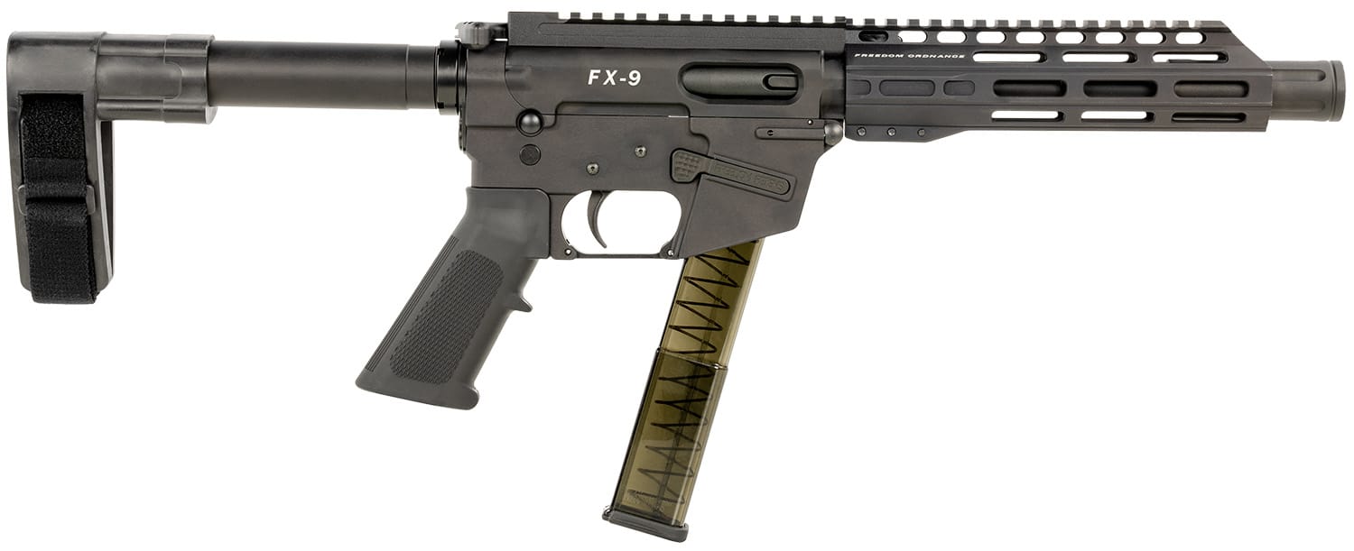 FREEDOM ORDNANCE FX9P8SBM FX-9 9mm Luger 31+1 8″ Black Nitride Steel Barrel, M-LOK Handguards, Black Anodized Aluminum Picatinny Rail Receiver, Black SB Mini Brace, AR15 Grip