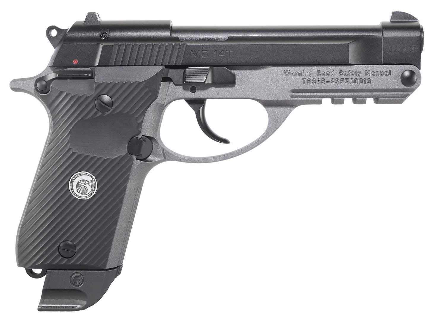 EAA GIRSAN 390855 MC 14T Solution Compact Frame 380 ACP 13+1, 4.50″ Black Steel Tip-Up Barrel & Serrated Steel Slide, Matte Stainless Aluminum Frame w/Picatinny Rail, Black Polymer Grip, Ambidextrous