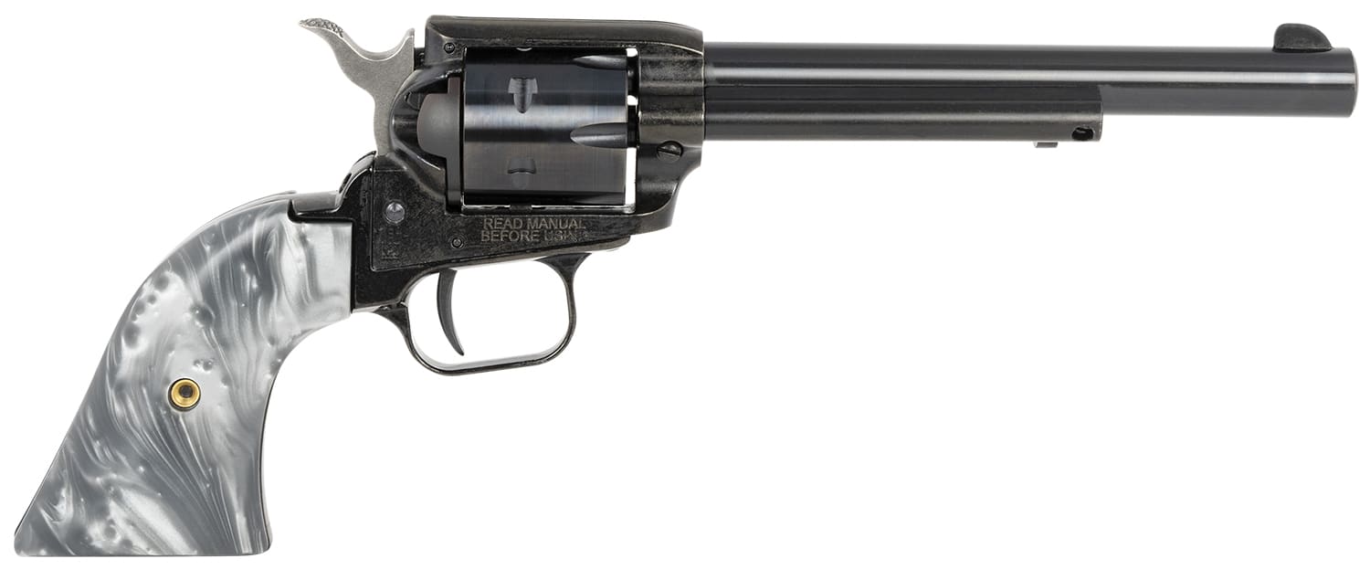 Heritage Mfg RR22B6GPRL Rough Rider 22 LR 6 Shot 6.50″ Black Barrel & Cylinder Black Frame, Altamont Gray Pearl Grips