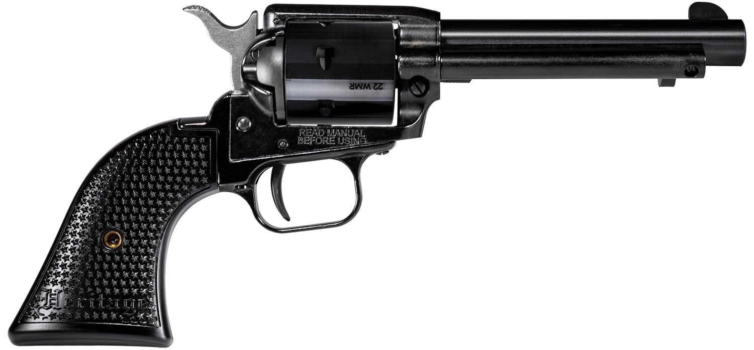 Heritage Mfg RR22MB4PG Rough Rider 22 LR/22 WMR 6 Shot, 4.75″ Black Steel Barrel, Black Cerakote Zinc Alloy Frame, Black Cerakote Cylinder, Black Polymer Grip, Hammer/Thumb Safety, Exposed Hammer