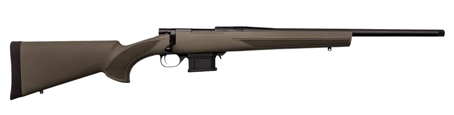 Howa HMACF65GYTH 1500 Mini Action 6.5 Grendel 20″ Black Carbon Fiber Threaded Barrel, Black Drilled & Tapped Steel Receiver, Fixed HTI Green Synthetic Stock