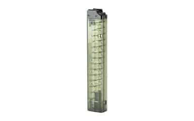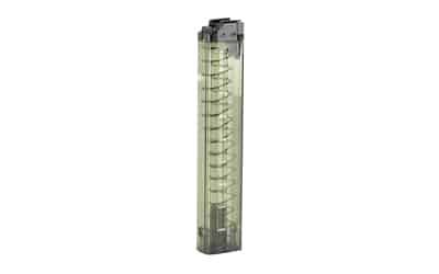These magazines are designed for the B&T APC9 platform. Constructed of a ultra-durable polycarbonate with steel reinforced feed lips. These features were added to enhance the function and durability of the magazine.