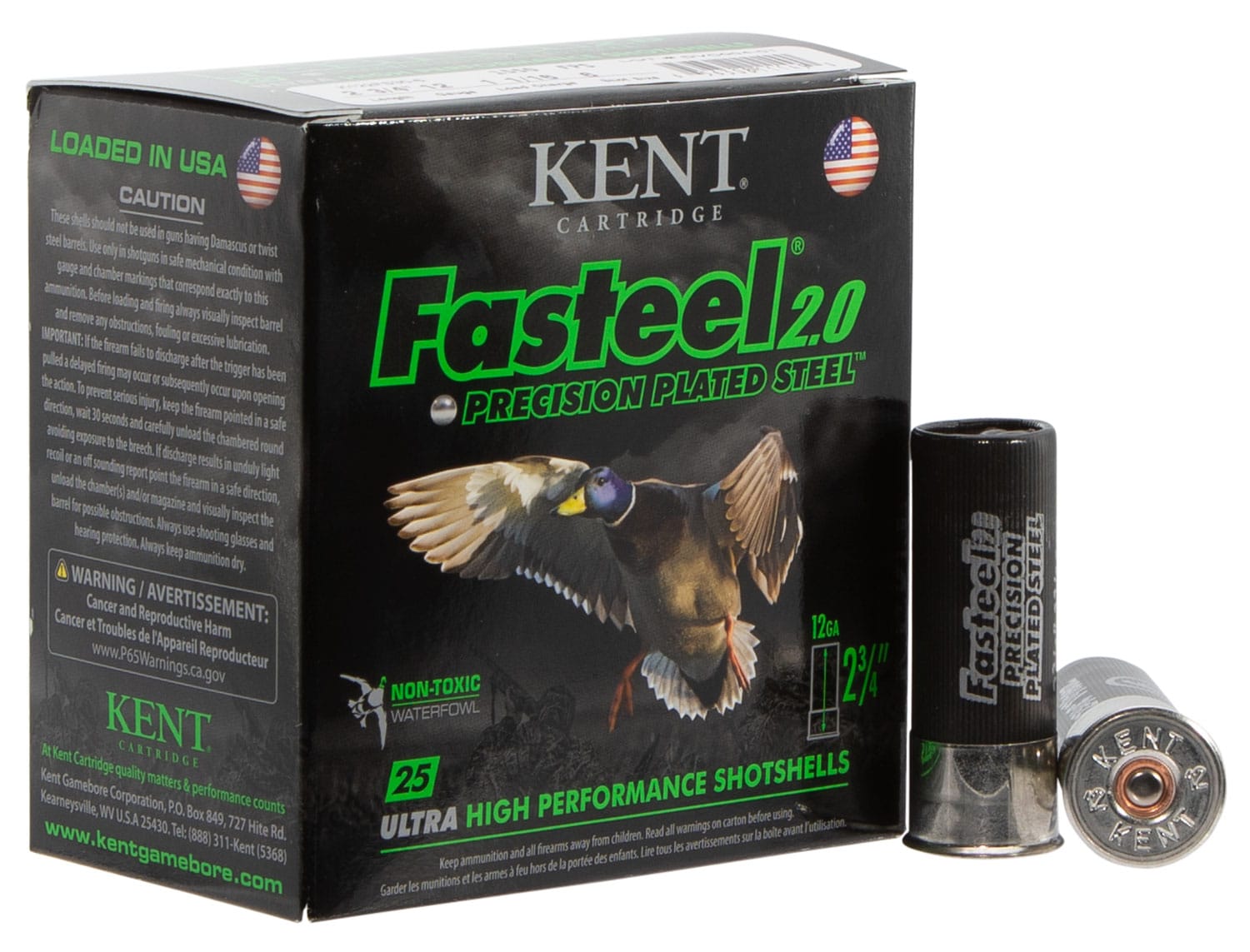Kent’s Fasteel 2.0 is meticulously loaded using premium components, this corrosion-resistant, non-toxic ammunition is praised by hunters and feared by waterfowl. Its foundation is a special base-wad that optimizes flawless functioning. Precision-ground, zinc-plated shot and nickel-plated heads defeat corrosion and defy the elements while delivering consistent shot patterns and performance. Custom-blended powders produce optimal load velocities while managing felt recoil and mitigating flinch factor.