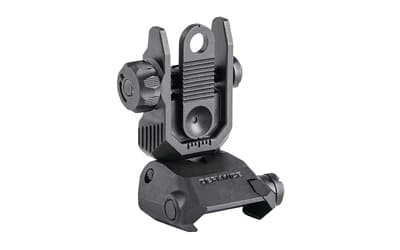 Kriss USA Low Profile flip up rear sight is the same OEM rear flip up sight that come standard with the Kriss Vector and DKM22 firearm platforms. The sight provides you with an extremely low profile rear sight which will tuck completely out of the way when folded resting at a slim .56″ when folded down in the stowed position. This particular rear sight has dual apertures and a wide range of Windage adjustment. The large textured adjustment knob makes windage changes simple and easy especially if you are operating with a gloved hand.