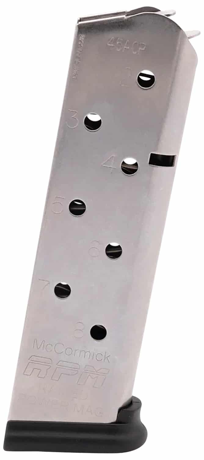 CMC Products 17130 Power Mag Railed 8rd 45 ACP Fits 1911 Government Stainless Steel w/ Black Base Pad