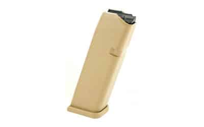 Each GLOCK magazine is constructed from a hardened steel insert encased in high tech polymer to protect the magazine and prevent deformation, even when dropped from a great height. The high quality spring and follower ensure reliable feeding from the first to the last shot.