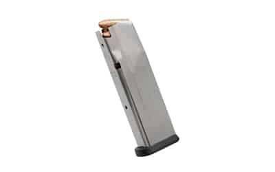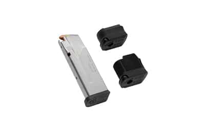 When polymer won’t work, Magpul’s AMAGs will. The same reliability and consistency you expect out of their PMAGs, now available in alloy magazines. The AMAG 15 SG9 is a 15-round SIG P365 9mm handgun magazine featuring a heat-treated, stainless-steel alloy body with polymer sub-components. Magpul AMAGs come with many of their proven features, including a high-visibility, controlled-tilt follower, stainless-steel spring, flared floorplate that’s easily removable for cleaning and routine maintenance, paint-pen dot matrix for magazine marking, and capacity-indicator windows which begin at five (5) rounds, and continue along the spine of the magazine in one-round increments.