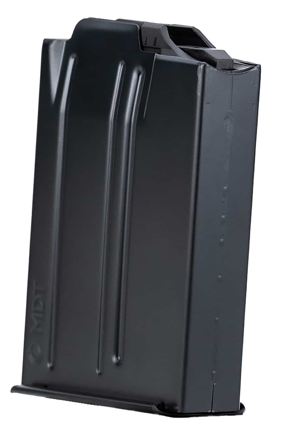 These magazines are designed with a unique Double Stack to Single Feed (DSSF) transition design for reduced overall height compared to the industry standard. DETAILS: MDT AICS-pattern metal magazines are manufactured from high strength steel, nitrided, and finished inside and outside with Cerakote Elite for ultimate durability, corrosion resistance, and friction reduction. SPECIFICATIONS: 10-Round: 3.055 Outside Length, 3.90″ Rear Height (same height as MDT 10-rd .308 metal magazines), 2.50 max cartridge overall length (COAL), Polymer feedlip inserts extend ~0.5″ past the end of the metal feedlip backer, thus retaining the round longer, helping ensure the tip of the round has entered the chamber before the rear of the round is released.MDT 10-round magazines are approximately shorter in height than standard AICS 10-round magazines due to MDTs unique Double Stack to Single Feed (DSSF) transition design, allowing easier mag changes when shooting prone. 10-round magazine includes 2 internal ribs that help reduce friction between the cartridge and magazine body and provide a smooth transition from a double stack to single feed at the top of the magazine. COMPATIBILITY: 223 Rem, 5.56 NATO