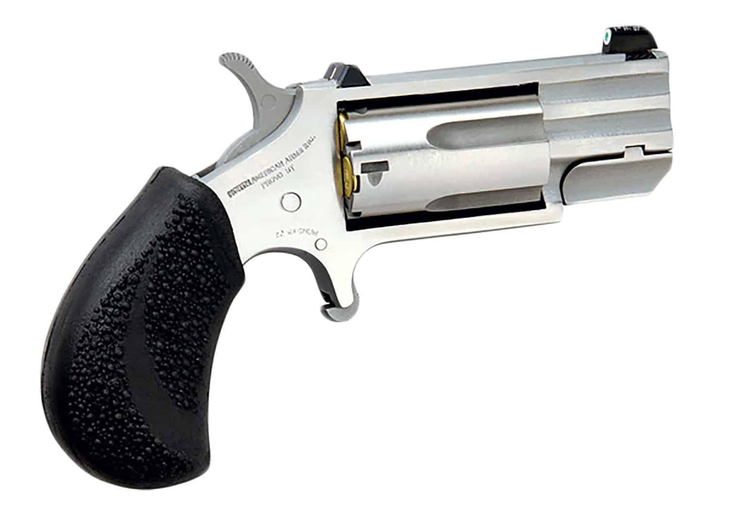 North American Arms PUGT Pug 22 WMR 5 Shot 1″ Stainless Steel Barrel, Frame & Cylinder, Black Pebbled Rubber Grip, Exposed Hammer