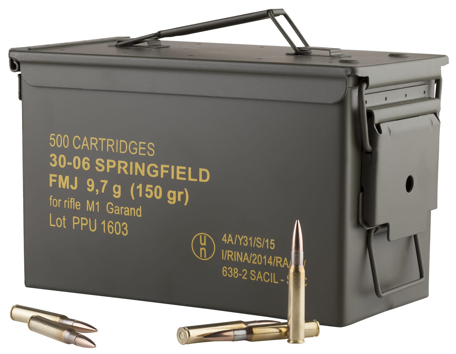 PPU PP3006GMC Standard Rifle 30-06Springfield 150gr Full Metal Jacket/500rds *Sold by Case *Includes Metal Can