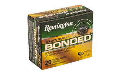 Formerly a law enforcement only product, Golden Saber Bonded is now available to the public. The ultimate in defensive and tactical handgun ammunition, these rounds utilize exclusive technology to produce match-grade accuracy and optimal terminal performance. Improving on trusted Golden Saber, Golden Saber Bonded’s reduced bullet nose diameter, optimized jacket thickness, and Remington bonded-bullet manufacturing process produces unmatched expansion, weight-retention and barrier-blind performance to keep you safe.