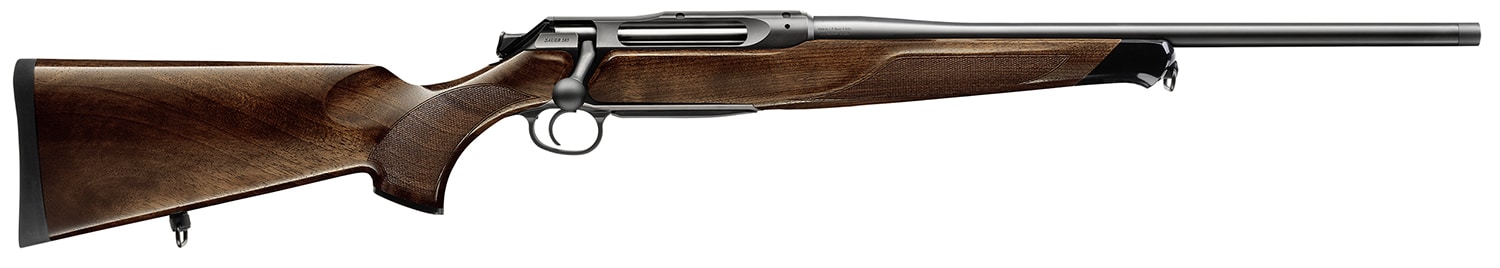 The Sauer 505 features a steel receiver with saddle mount; adjustable Quattro trigger; easy manual cocking; adjustable trigger pull weight; safe maglock; cold hammer rifled barrel; modular versatility- one system 19 calibers and stock exchange.