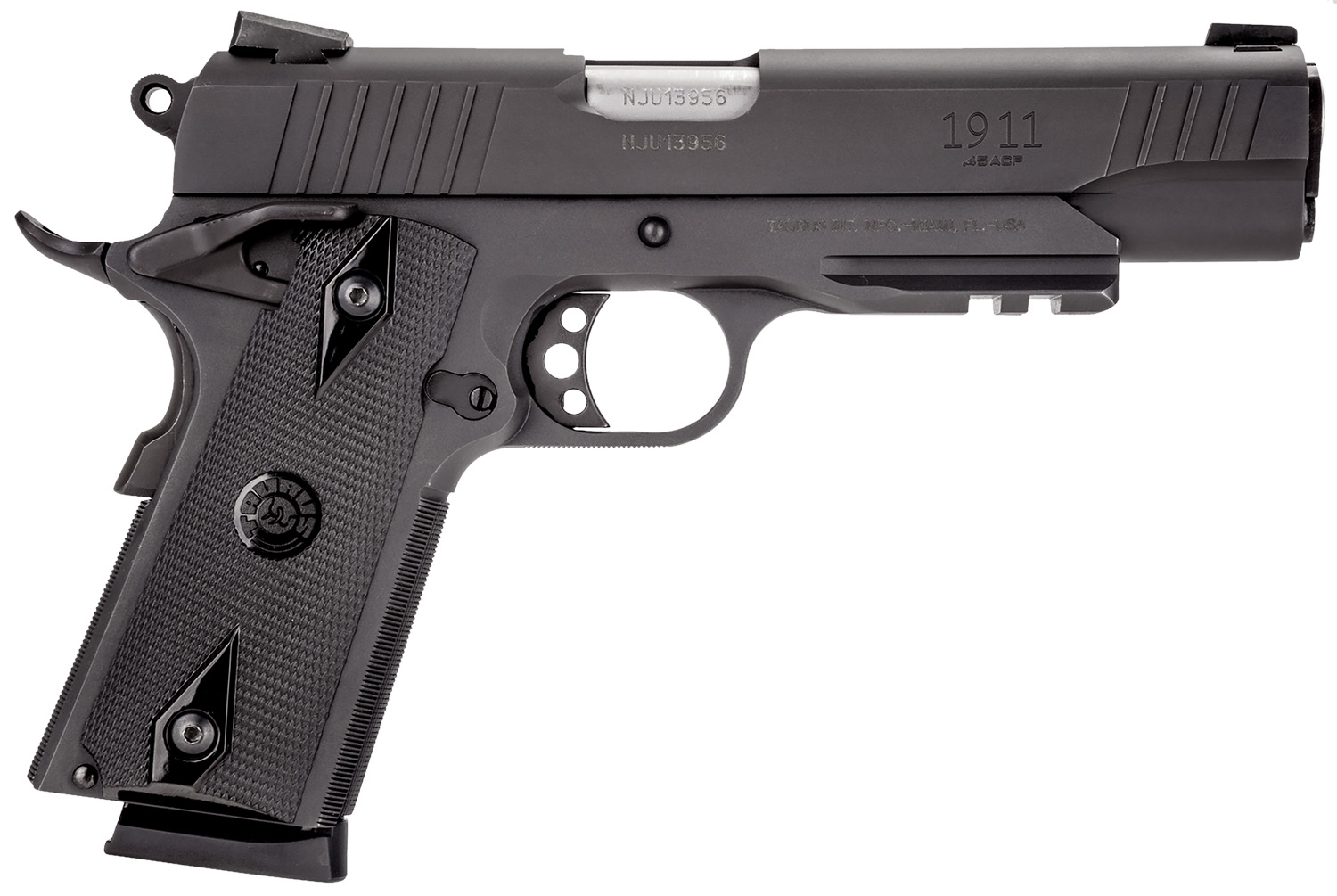 Taurus 1191101B1 1911 Full Size Frame 45 ACP 8+1 5″ Matte Stainless Steel Barrel, Matte Black Serrated Steel Slide & Frame w/Beavertail & Picatinny Rail, Black Checkered Polymer Grip, Right Hand