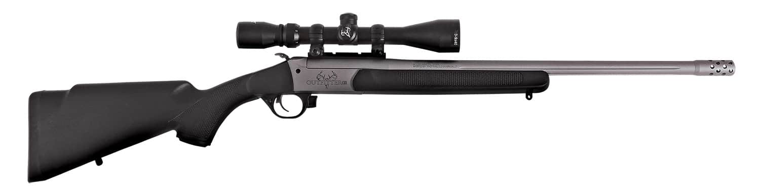 Traditions CR9-451130T Outfitter G3 Takedown 450 Bushmaster 1rd 22″, Stainless Cerakote Barrel/Rec, Black Synthetic Stock, Muzzle Brake, 3-9x40mm BDC Scope