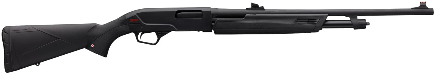 Pick up the Winchester Super X Pump (SXP) shotgun and experience the light weight, centered balance and instant pointability firsthand. The Super X design provides you with the fastest follow-up shots. No other pump offers the feeling of an inertia-assisted slide-action that can deliver three shots in a half second. Whether its super-speed clays or fast-flushing upland game, keep up with shootings fastest action with the Super X Pump, the perfect choice for pump shotgun lovers. This Black Shadow Deer model features a fully rifled barrel and TruGlo fiber optic sights.