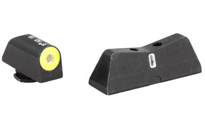 XS DXT2 Big Dot Night Sights offer the best front sight visibility in all lighting conditions. DXT2 Big Dot sights drive focus to the front sight using a high-contrast front and a V-notch rear for an unobstructed view of the front sight. DXT2 Big Dot front sights use a patent pending glow dot that absorbs light and glows in low light levels before it is dark enough to see the tritium. Optic Yellow is the best option for low light and has the brightest glow intensity. Primarily based on the white light spectrum, optic yellow is very reflective and will excite the photoluminescent properties of the dot faster than any other color. The increased surface area of the convex dot increases light absorption, intensifying the charge of the glow properties of the dot. The dot-the i sight picture, with a tritium dot in the front sight and a tritium bar in the rear, prevents confusing the front and rear sight in high-stress situations. The wide field of view increases visibility of the front sight and of the threat downrange.