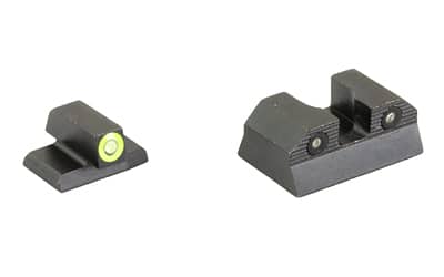 Their second-generation R3D night sights are engineered to give you a brighter, stronger set of sights. Easily install their sights with a set that requires 50% less force for installation. R3D sights are built to withstand years of EDC use and abuse. The set drives focus downrange using a serrated blacked-out rear sight and a dual-illuminated tritium photoluminescent front sight. R3D sights are the brightest notch and post option for fast and accurate shooting in bright and low light. Fits VP9 OR
